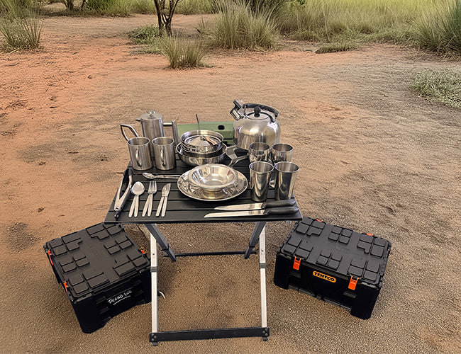 Our Full Camping Package with Roof Top Tent includes both the Sleep Out and Eat Out kits in one smart, compact setup. Designed for ease and flexibility, this package gives you the freedom of rooftop camping—without needing a big 4×4.